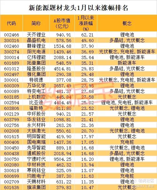 今年一月份,新能源汽车,光伏行业继续受到追逐。宁德时代市值接近万亿,通威股份和隆基股份同时创下历史新高。其他新能源,锂电池,光伏龙头也大幅度上涨。