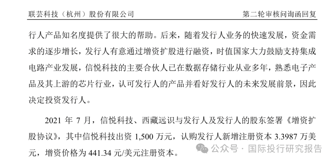 5、IPO说明书显示,联芸科技的预计市值为 41.05-115.79 亿,而目前西藏远识出资13,500万占4.2857%股份、信悦科技出资1,500万占0.4762%股份,简单按照100亿计算,IPO成功后,江波龙的市值就可达4.3亿左右,信悦科技拥有的市值就可达到0.48亿。这些突击入股+关联交易模式并非联芸科技独有,某些系的公司经常这样干,但是否要规范这些套现模式,行业监管部门可能需要改进补Bug。