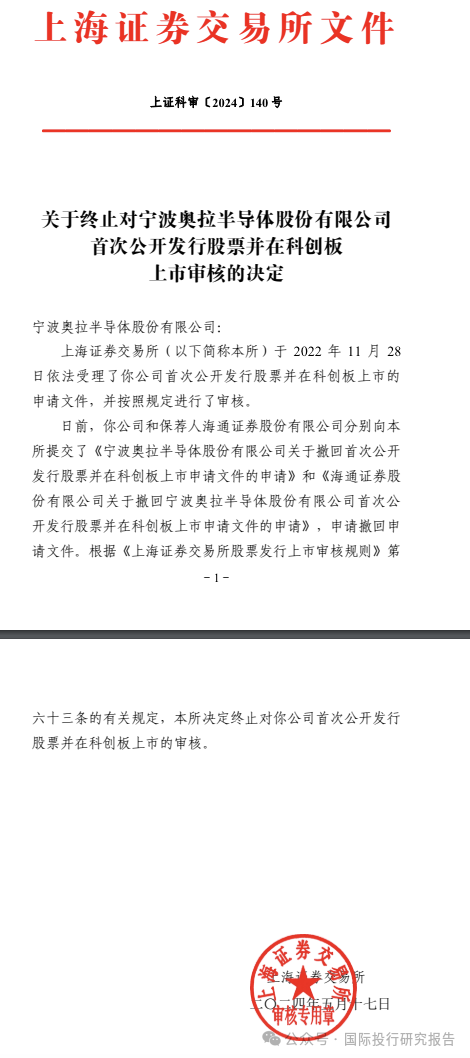 IPO关键一周!宁波奥拉半导体终止IPO:实控人7205万购买名贵收藏品!重启IPO联芸科技周五上会,关联交易和台积电托起!