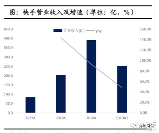 营业收入:快手收入从2017年的83亿增长至2019年391亿,从截止2019年上半年的171亿增至2020年上半年的253亿。从快手最新发布招股说明书更新版本,显示2020 年前三季度收入同比增长49.2%至406.77 亿元。快手近几年增速虽有所放缓,但仍旧能保持近50%增速,实属迅猛,成长性可观。