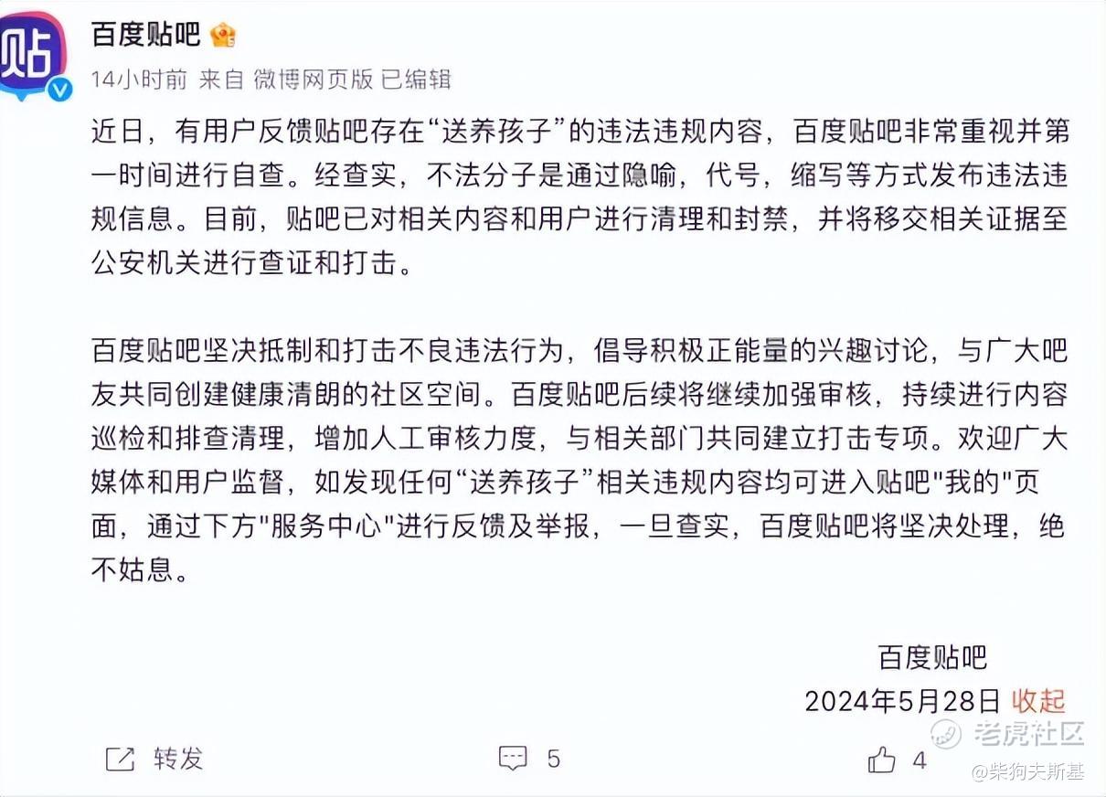 随后,百度贴吧也在官方微博发布声明:称将移交相关证据进行查证和打击。