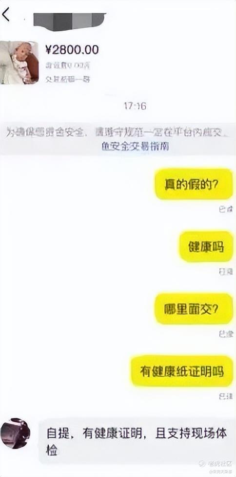 网友与其沟通的聊天记录显示,该卖家称:「有健康证明,支持现场体检」