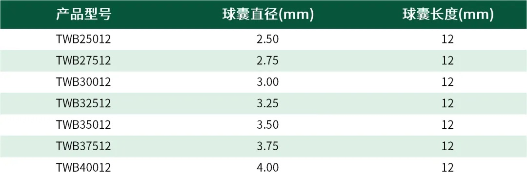 同时为了贴近国内患者的临床需求,C-Wave®冠脉冲击波导管提供每0.25mm步进的规格型号,其导管(球囊)具有从2.5mm到4.00mm共7个的规格型号。