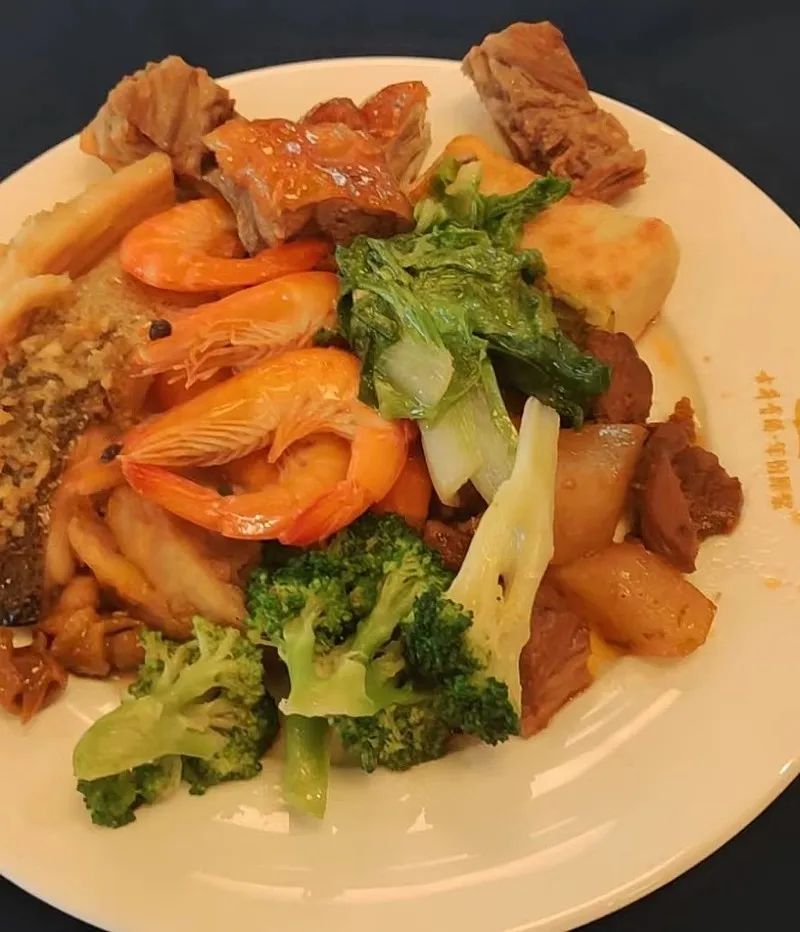 中午火车上没吃饱,实在是饿了,到饭点了第一时间去餐厅自助,比较常规的菜,鱼、虾、肉、菜、汤、水果应有尽有,健康、管饱没问题。
