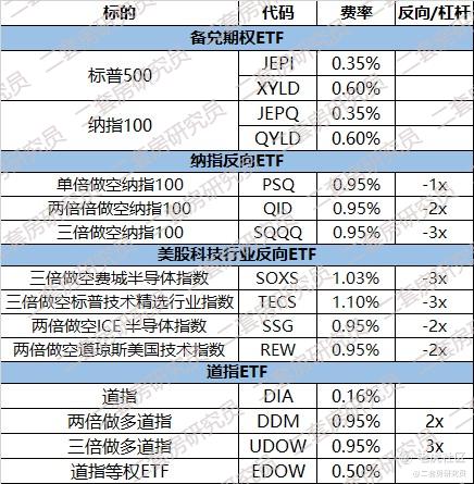 博空美股科技股的产品可以分为两大类,一类是纳指的反向/杠杆ETF,另一类是针对细分行业的反向/杠杆ETF。