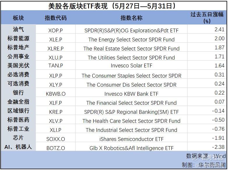 上周,美股风格大变脸,从各板块ETF周度表现来看,AI热门板块芯片、机器人竟然垫底了: