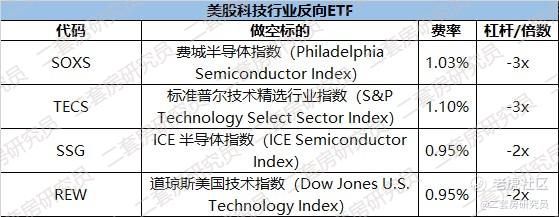 2. 如果你觉得科技股这波要大跌,那么可以看看反向杠杆ETF;
