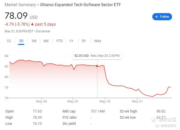 最惨的还要属软件股,Salesforce暴跌超10%,贝莱德旗下规模最大的软件ETF IGV上周跌了近6%。