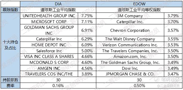 我们在之前的文章里介绍过,最著名也是唯一的道指ETF是道富银行旗下的DIA。道指也有对应的等权版本:EDOW,对于不希望被股价大幅上涨的公司所影响的投资者,EDOW提供了一个更合适的选择。