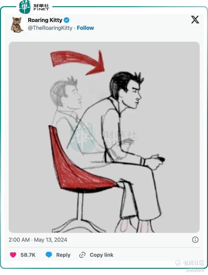 今年5月13日,沉寂多时的“带头大哥”再度回归,在X发布了一张别有深意的图片,图片显示的是一个人打游戏时身体前倾认真起来的姿态。
