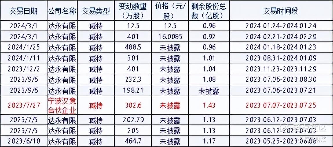 在本次公告之前,达永有限已经多次出手减持。疾风财经统计同花顺数据,2023年5月至2024年3月,达永有限减持数量达到10次,累计减持2907万股。达永有限的持股比例由30.3%降至23.05%。