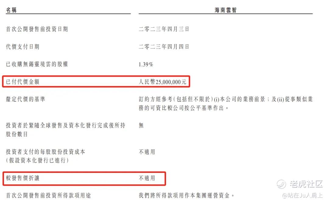 境内主体公司无锡灵境云于23年4月引入了战投海南云智投资2500万港元,持股1.39%。海南云智由杨安和成功先进制造产业投资公司分别持有55%和45%股权。后者是成都市国资委旗下控股企业。禁售期无。