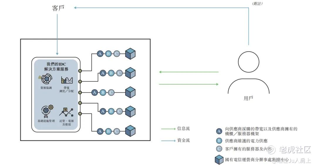 IDC解决方案服务即客户向公司发送请求信息,公司通过协调上游供应商数据中心,为下游客户提供服务。公司在此过程中仅起到资源协调,带宽分配以及电力供应等作用。若以房地产行业为例,云工场相当于房屋中介的角色。
