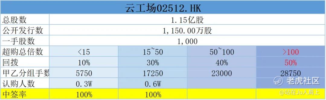 公开发行1150万股,1000股一手,甲乙组初始手数5750手,最新孖展2.44倍,预计超购15~50倍回拨3成,中签率100%。