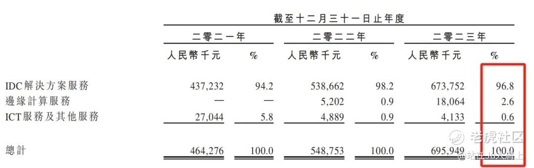 公司收入来源主要由IDC解决方案服务、边缘计算服务、ICT服务及其他服务三部分构成,其中IDC解决方案服务是公司核心业务,最新收入占比为95.8%。边缘计算服务收入略有起色占比从0增长为2.6%。