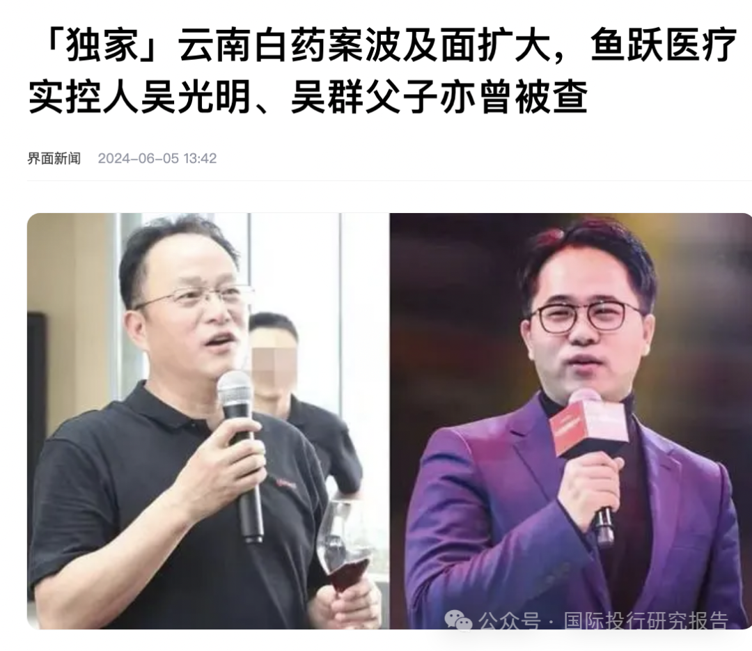 5、A股另一家知名医药上市公司鱼跃医疗实控人吴光明、吴群父子也涉及此案,二人此前也已经历监管部门的调查,不过现已二人已结束调查,同样被边控。