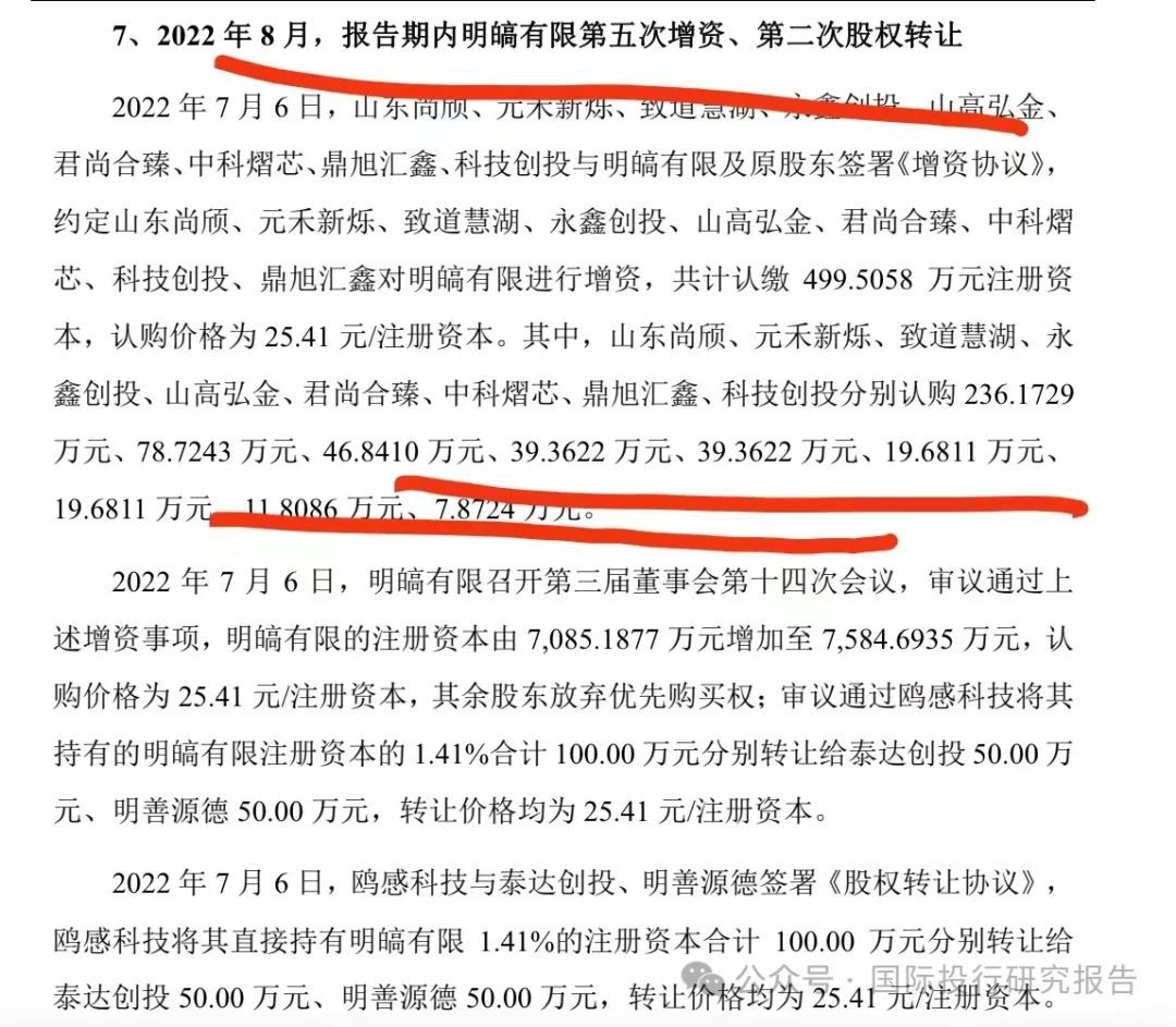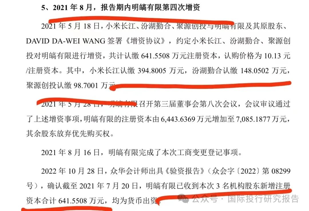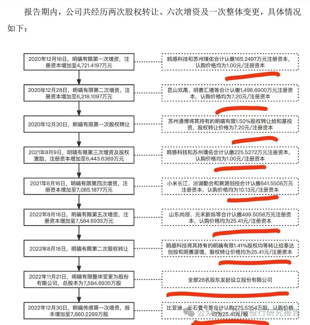 5、明皓传感的发展过程和融资过程,就是一部典型的众多所谓金融资本撸羊毛过程,最终目标是可怜的韭菜。方法也没什么特别的,找个技术亮点,先投一点,然后提高估值,引进几个有号召力的投资人,不断提高估值,上市前再找一些想发财的进来。 明皓传感先是找来小米等投资人,最后连比亚迪也来了,在Pre-ipo中又引进了不少私募基金,然后。。。。好在,这个过程戛然而止了,为交易所和证监会点赞!