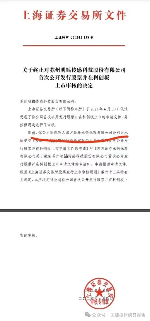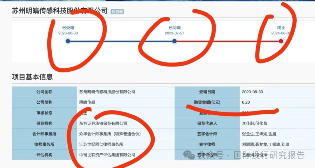 1、上交所2023年6月30日受理明皓传感的IPO申请,同年7月27日就发出了第一次问询,但明皓传感和保荐人东方证券一次回复都没有,就在国九条新政下戛然而止。