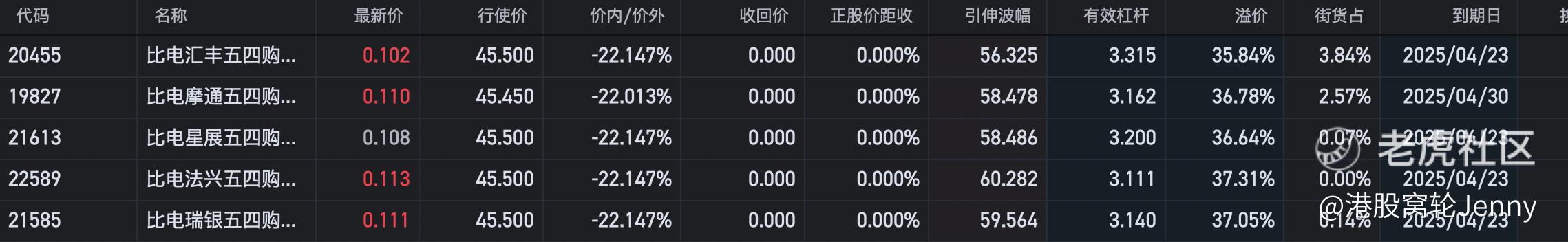 Y模型分析近期都有提及比亚迪电子 (00285.HK)结构偏强,昨日收市复盘中点评新高或阶段新高的个股有华虹半导体 (01347.HK)、中集集团 (02039.HK)、285。如果继续看好285 可考虑20455和19827以及21585,行使价均为45.5元,实际杠杆3倍。 $华虹半导体(01347)$ $中集集团(02039)$