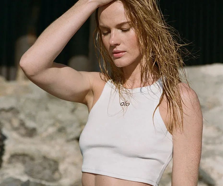 在上述的华尔街日报的文章中,Alo被赋予的一个意义是“最能代表我们这个时代的穿搭”——身穿米色Alo紧身裤和运动背心,搭配白色袜子、白色运动鞋,手里拿着巨大的水杯、iPhone和特斯拉钥匙扣,看起来就像某个耀眼的明星正在去往洛杉矶热门普拉提教室的路上。