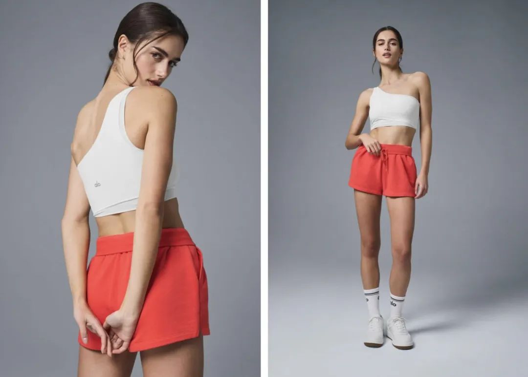 Alo最畅销的产品以运动背心、各式各样的运动裤、网球裙等为主,设计感强烈,一件背心的价格通常在六七十美元,裤子的单价大多在100美元以上,与lululemon价格相当,甚至更贵一些。