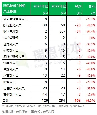 瑞信证券(中国)年报披露,截至2023年底,公司共有员工126名
