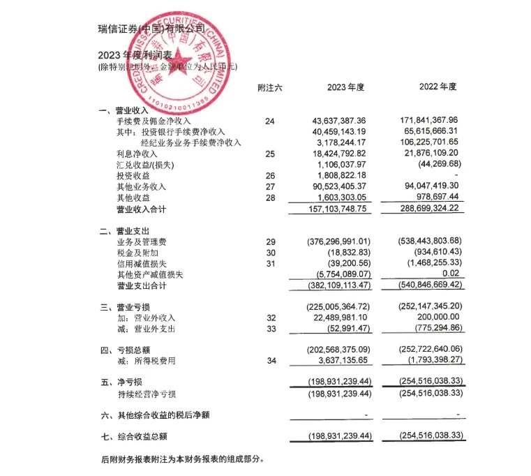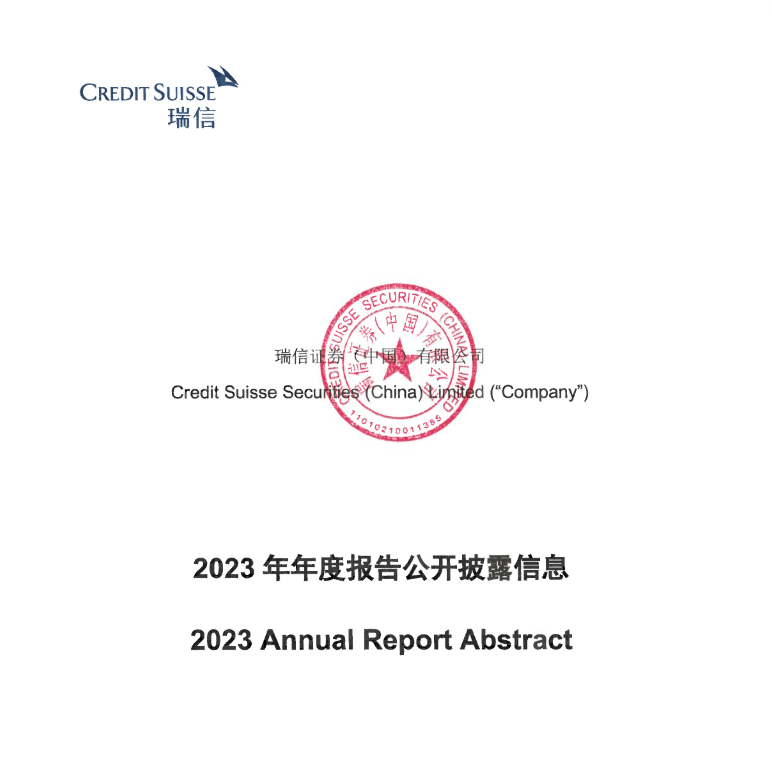 瑞信证券(中国)有限公司,于近日发布2023年报。