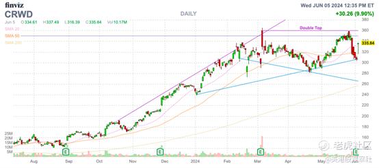 CrowdStrike仍是表现最佳的企业之一。这家网络安全专家也是市场上估值最高的股票之一,CrowdStrike的估值与其行业股票脱钩。在最近出现的双重顶形态和在另一个强劲季度之后未能恢复势头之后,这只股票仍然极为看跌。