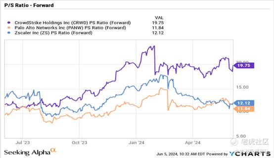 虽然网络安全平台公司的估值一直很高,但CrowdStrike最近却与业内同行分道扬镳。目前,该股的远期市盈率接近20倍,而Palo Alto Networks和Zscaler的远期市盈率约为12倍。