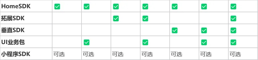 各个 SDK 包间的组合能力,总共有以下 7 种玩法: