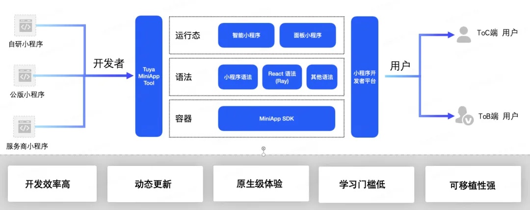 在涂鸦 App SDK 生态体系之内,涂鸦还为开发者提供了一套集自主化开发、部署、版本管理、多语言、数据化分析等全流程于一体的跨端解决方案 —— MiniApp SDK 。接入此 SDK,开发者就能自主、可控、快速地开发小程序,大大降低多端开发的技术门槛和研发成本,同时开发者也可直接运行涂鸦的智能小程序,让业务落地更快更便捷。