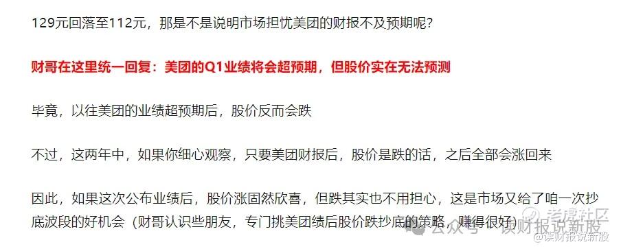 财哥继续在这里统一回复:美团的每次业绩超预期,跟股价关系不是很大!