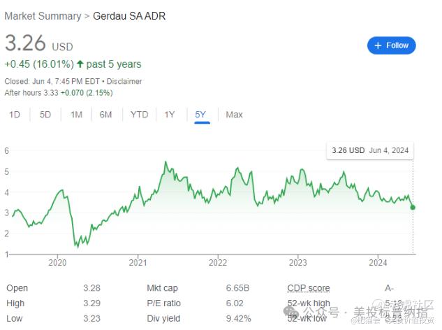 图1. GGB过去5年的股价走势