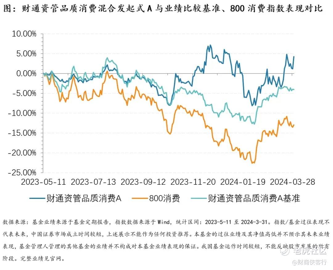 一季报数据显示,截至今年3月31日,财通资管品质消费混合发起式基金A份额自去年5月11日成立以来的净值增长率为4.26%,大幅跑赢同期业绩比较基准收益率(-4.20%)、800消费指数收益率(-13.25%)。
