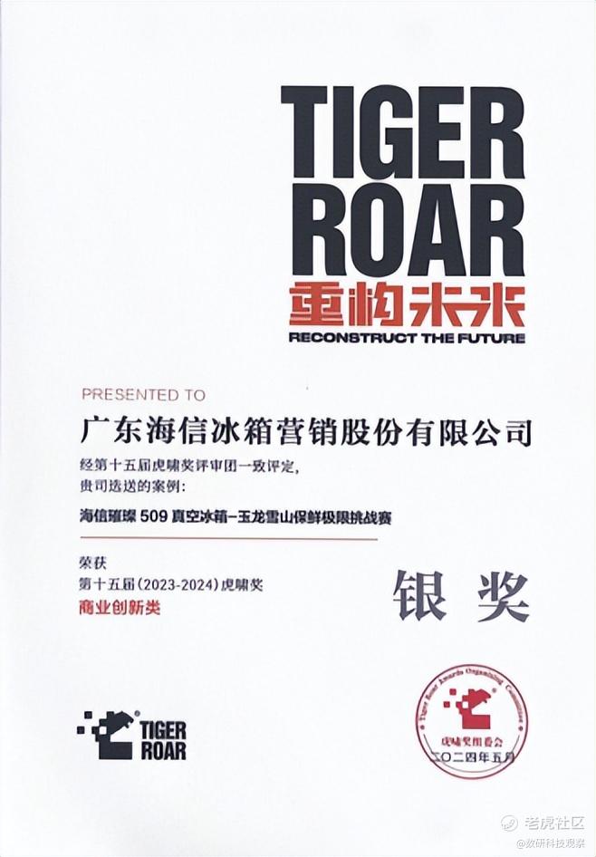 日前,在由中国商务广告协会主办的第十五届虎啸奖颁奖典礼上,海信真空冰箱提报的“玉龙雪山保鲜极限挑战赛”营销案例,凭借创新的营销模式和场景化体验一举斩获商业创新奖,展示了海信真空冰箱在产品营销领域的创新成果。