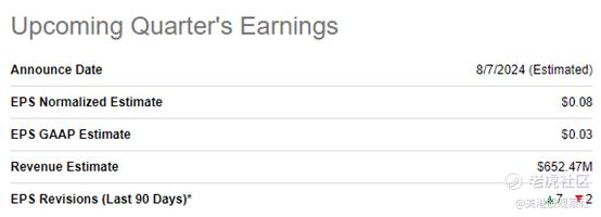 下一季度财报将于8月7日发布。市场普遍预计,该公司季度收入将达到6.53亿美元,比2023年第二季度增长22.5%。收入再次加速增长是一个乐观的迹象。另一方面,尽管预计营收将连续增长,但调整后的每股收益预计仍将保持在0.08美元的水平。市场对第二季度财报的看法相当乐观,过去90天里有七次上调每股收益。
