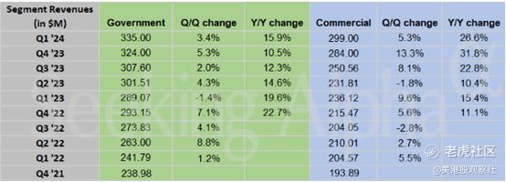 公司商业部门收入的强劲势头推动了这种强劲的情绪,这是一个关键的驱动因素,而来自政府合同的收入与2022-2023年的水平相比明显放缓。另一方面,政府收入仍然是两位数,最近该公司赢得了一份价值4.8亿美元的人工智能系统原型国防合同。