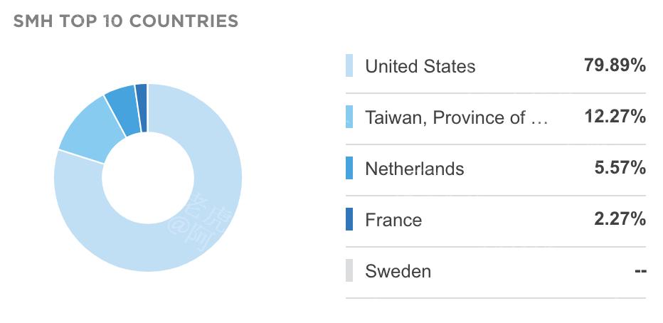 AMD$(AMD)$比例是3.66%。而SMH是Van Eck发行的,跟踪MVIS U.S. Listed Semiconductor 25 Index,持股24只如下: