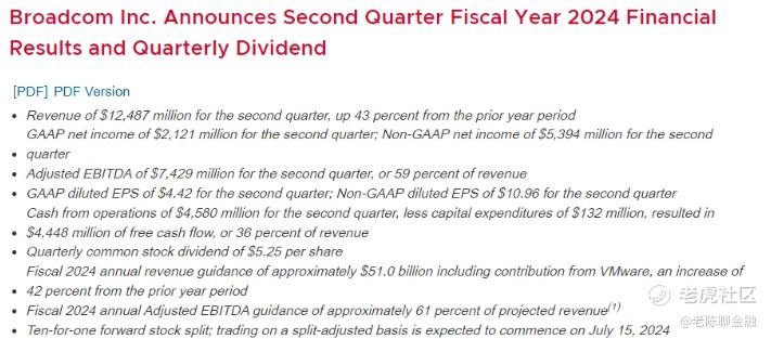 博通公司在周三盘后公布了第二季度财报业绩,这是本季度的主要指标。根据公布的数据显示,AVGO第二季度收入为124.87亿美金,超过分析师预期的120.28亿美金,该公司公布的第二季度每股收益为10.96美金,超过分析师预期的10.84美金。博通已经连续16季度超过每股收益预期。