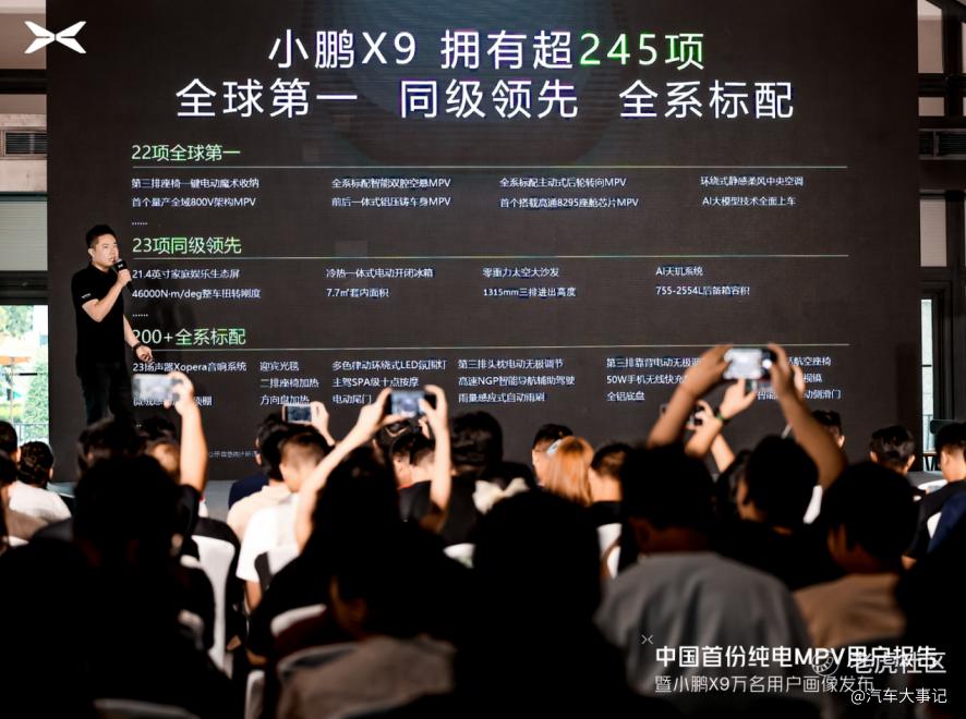小鹏汽车经过10年的持续探索,在智驾及技术上保持领先,有效洞察快速发展的用户真实需求,不向现实妥协,为市场提供最好的产品。通过中国首份纯电MPV用户报告暨小鹏X9万名用户画像发布,助力智能新能源行业清晰、精准地洞察高端纯电MPV市场的发展趋势,持续为更多用户带来超越期待的产品与体验。