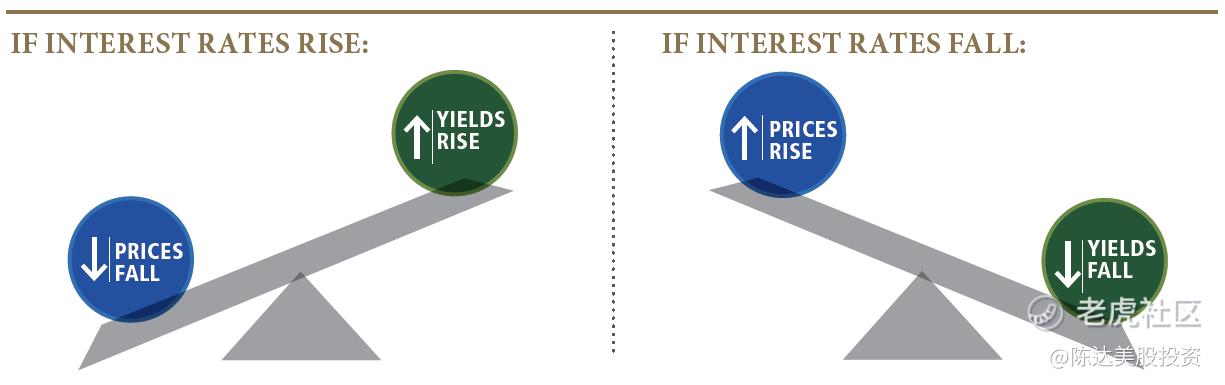 关于国债的价格,如果你比较陌生,只需要知道一件事情,假设信用违约这个风险不变,国债价格就是一个跷跷板,一头是现行利率,另一头是债券价格。现行利率上升,债券价格就下跌;先行利率下降,债券价格就上涨。他们的关系就有点像电阻与电流。