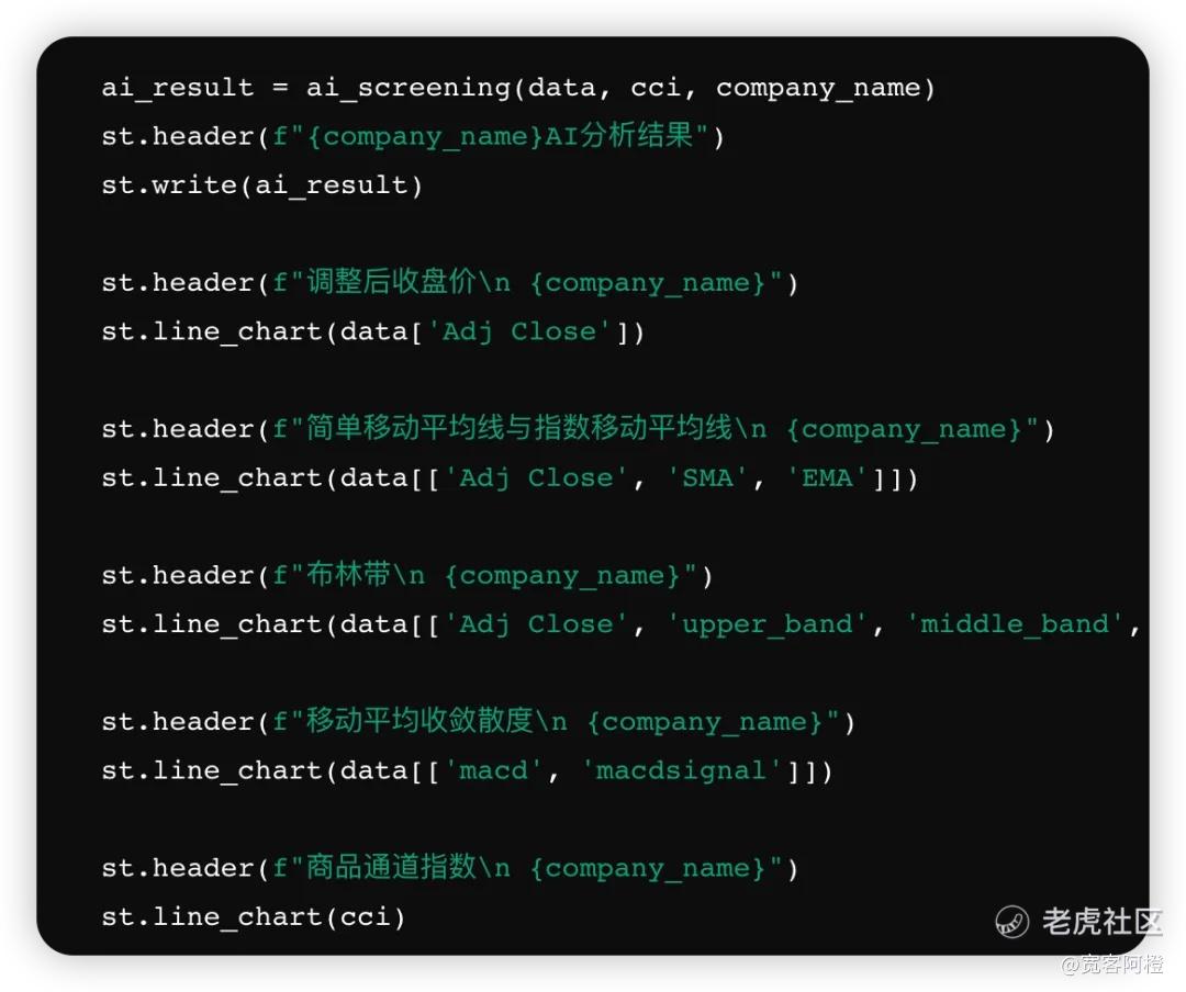 获取数据后,我们进行技术指标计算并调用AI分析函数,然后在Web界面展示结果: