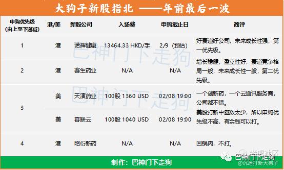 年前最后一波打新,预计有3支港股,2支美股可打,大狗子基于目前的信息排一下个人的申购优先级。