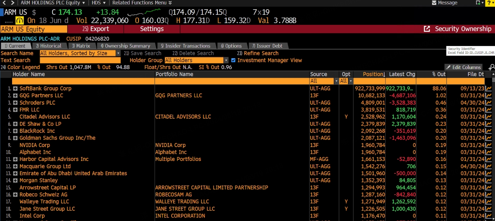 一个是ARM的流通盘较小,将近9成的股份都在软银手中: