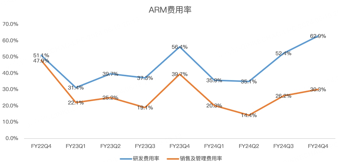 但是,由于ARM的收入规模较小,且研发投入力度过高,占总收入的比重高达63%,因此,ARM的净利率是远低于英伟达的: