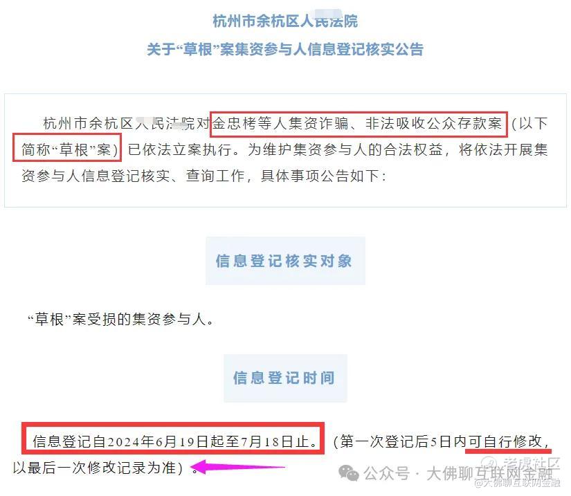 “草根投资”案件,即金忠栲等人集资诈骗、非法吸收公众存款案,在6月19日进入了新的阶段。