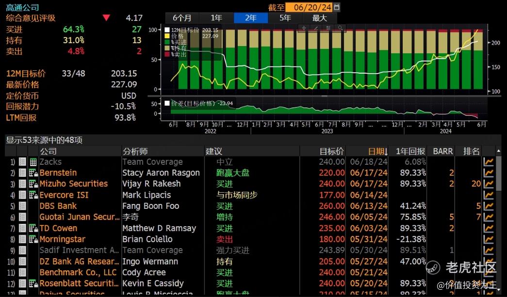 因此,高通最暴利的上涨阶段已经结束,未来的涨幅需要超预期的指引带动,目前,分析师的目标价多在240元左右,现价227:
