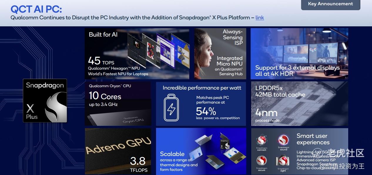 高通的手机芯片采用的就是arm架构,因此,AI PC时代来临之后,高通做arm架构的PC芯片,就是手到擒来。