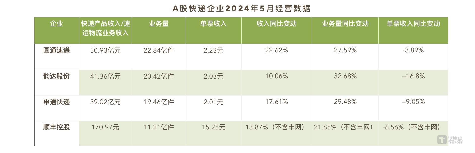 快递企业5月业务量超预期增长,单票收入触底,逼近2元关口 | 行业风向标