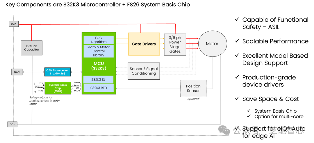 NXP的S32K3x系列MCU(微控制器)是这一优化方案的核心,它专为汽车应用而设计,提供高性能的硬件安全引擎、嵌入式网络通信接口(包括FlexCAN、LIN、以太网等)以及超低功耗特性。这些MCU能够满足汽车电子控制单元(ECU)对功能安全(ASIL)的严格要求,确保产品符合行业标准。